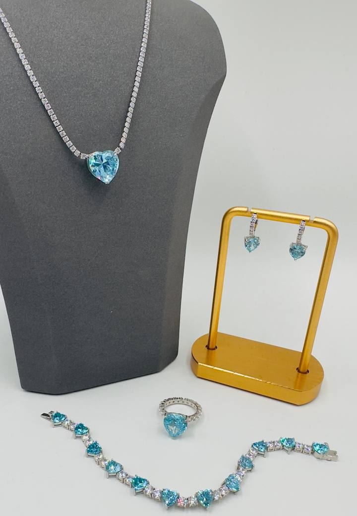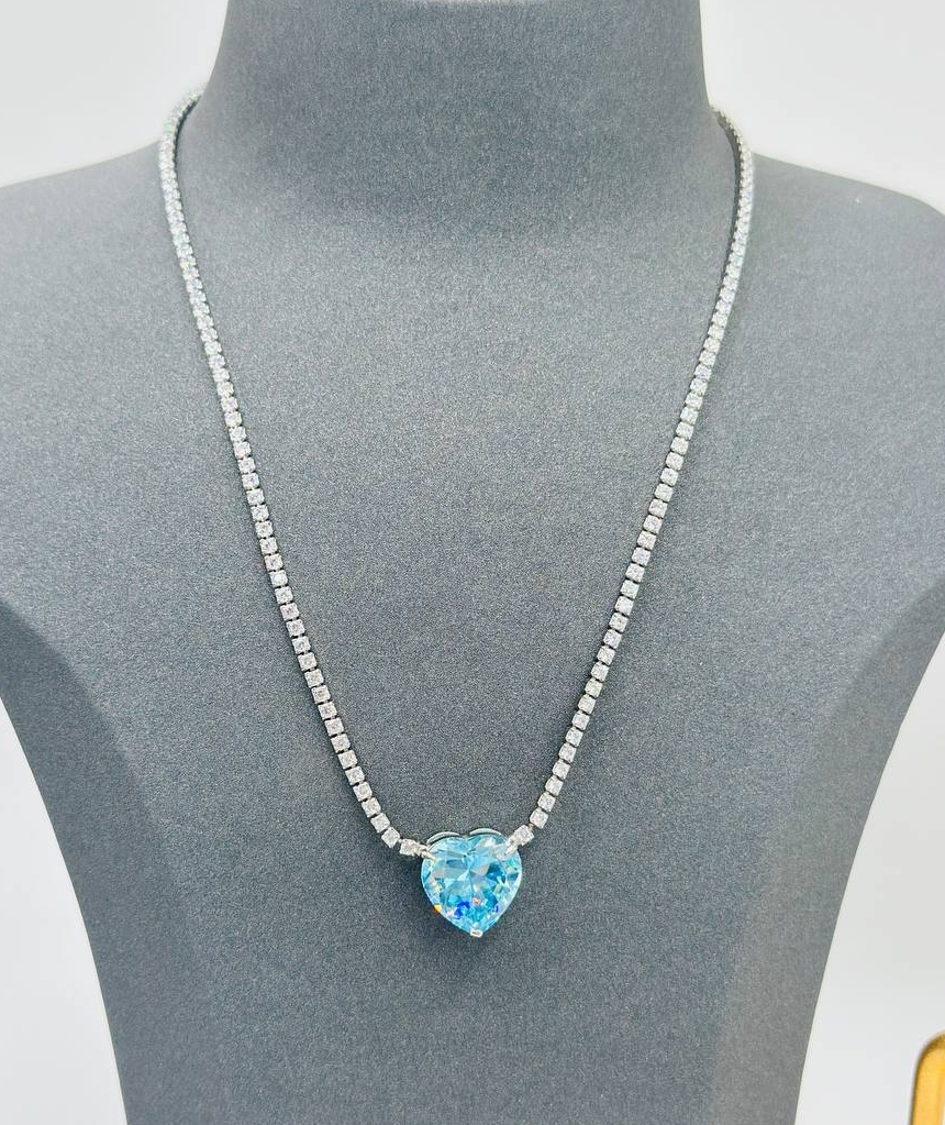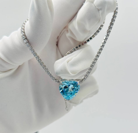70542- Колье теннисное "HEART- Сердце" из серебра с подвеской цвета голубой топаз