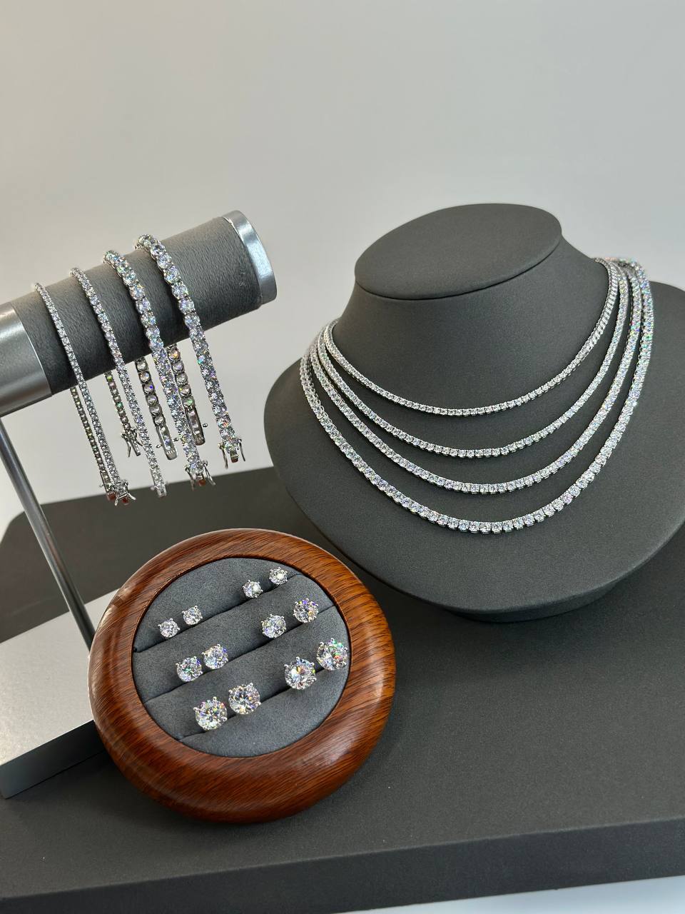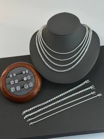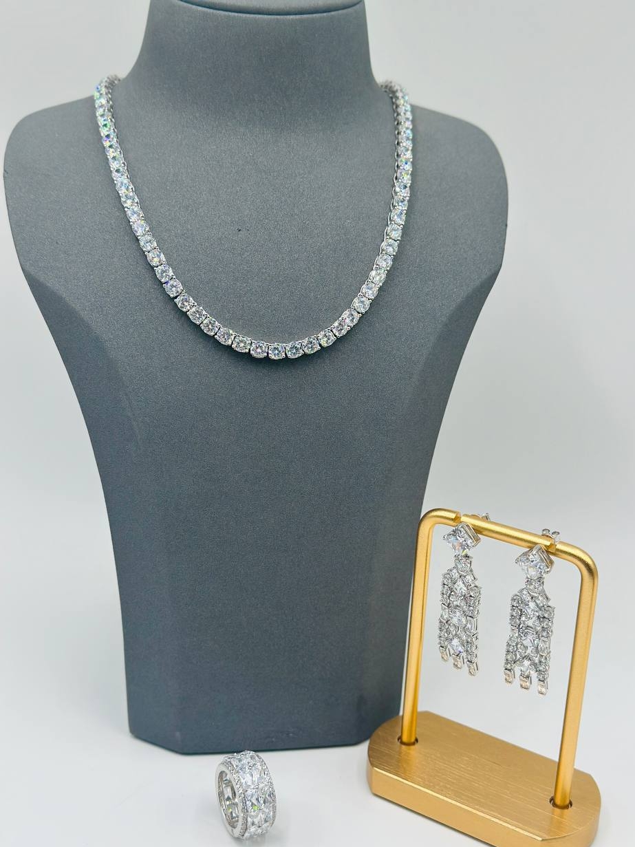 Колье-дорожка (теннисное колье) из серебра 925 пробы с куб.цирконами бриллиантовой огранки d5мм