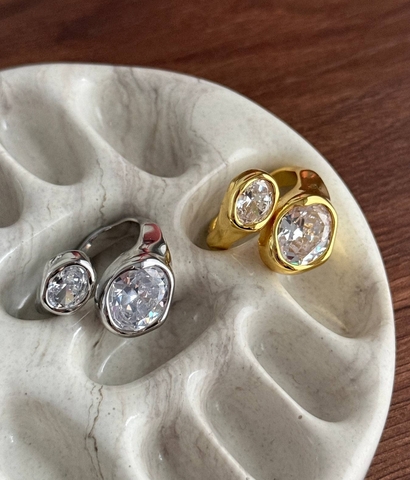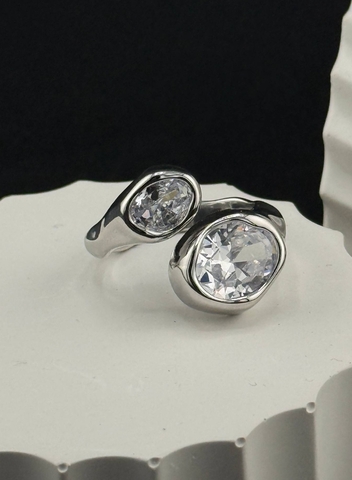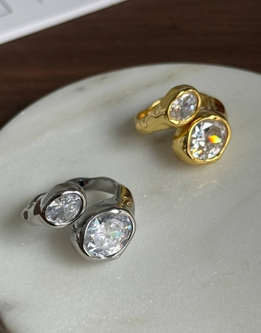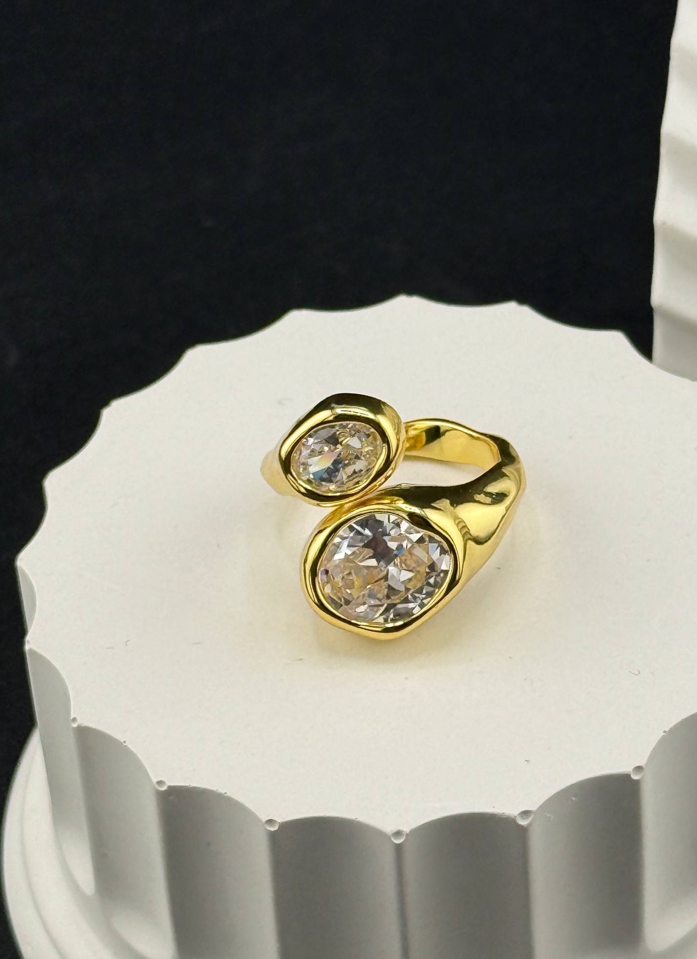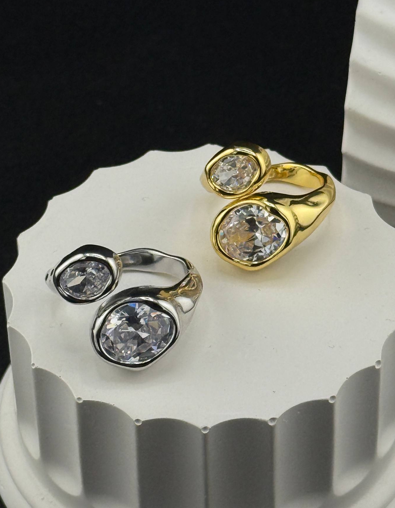 84542 - Кольцо разъемное ДВА КАМНЯ в стилистике POISON DROP лимонная позолота/серебро