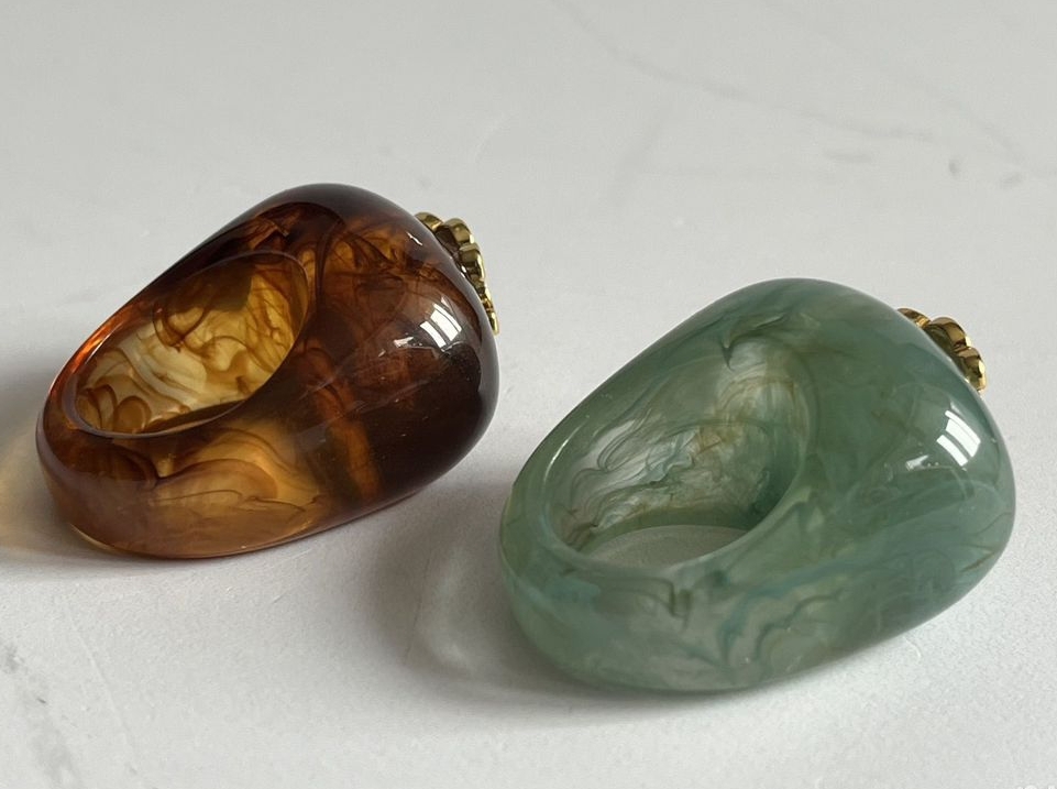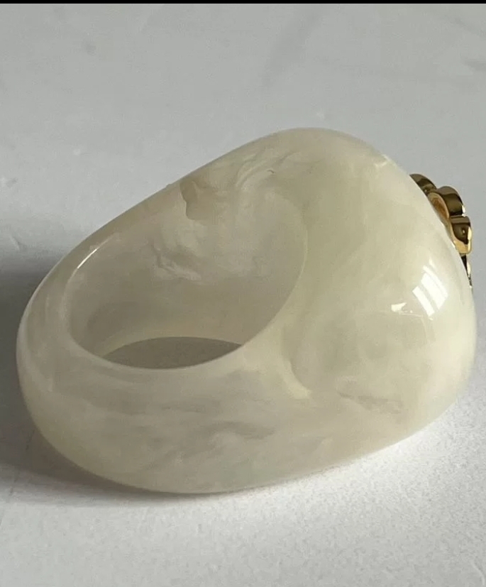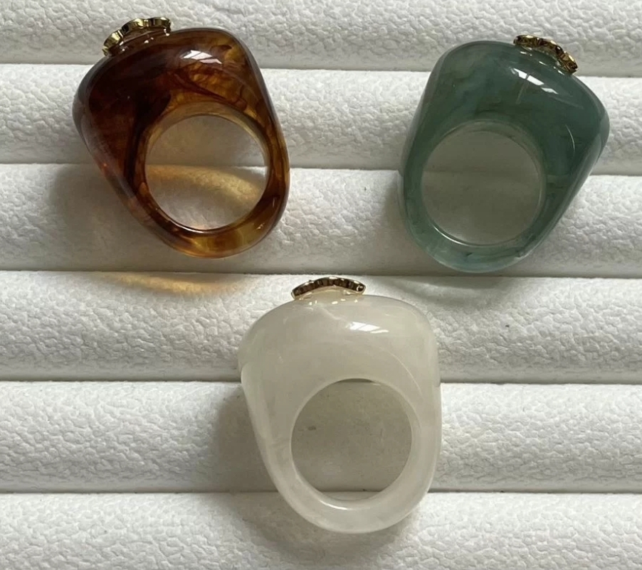 Кольцо представлено в 17 размере, в наличие в 3-х цветах: янтарный, молочный белый и бледно зелёный