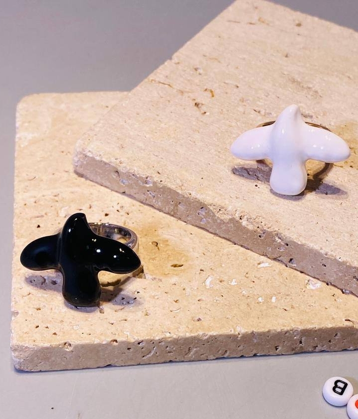 Кольцо ПТИЦА черная/белая в стилистике POISON DROP