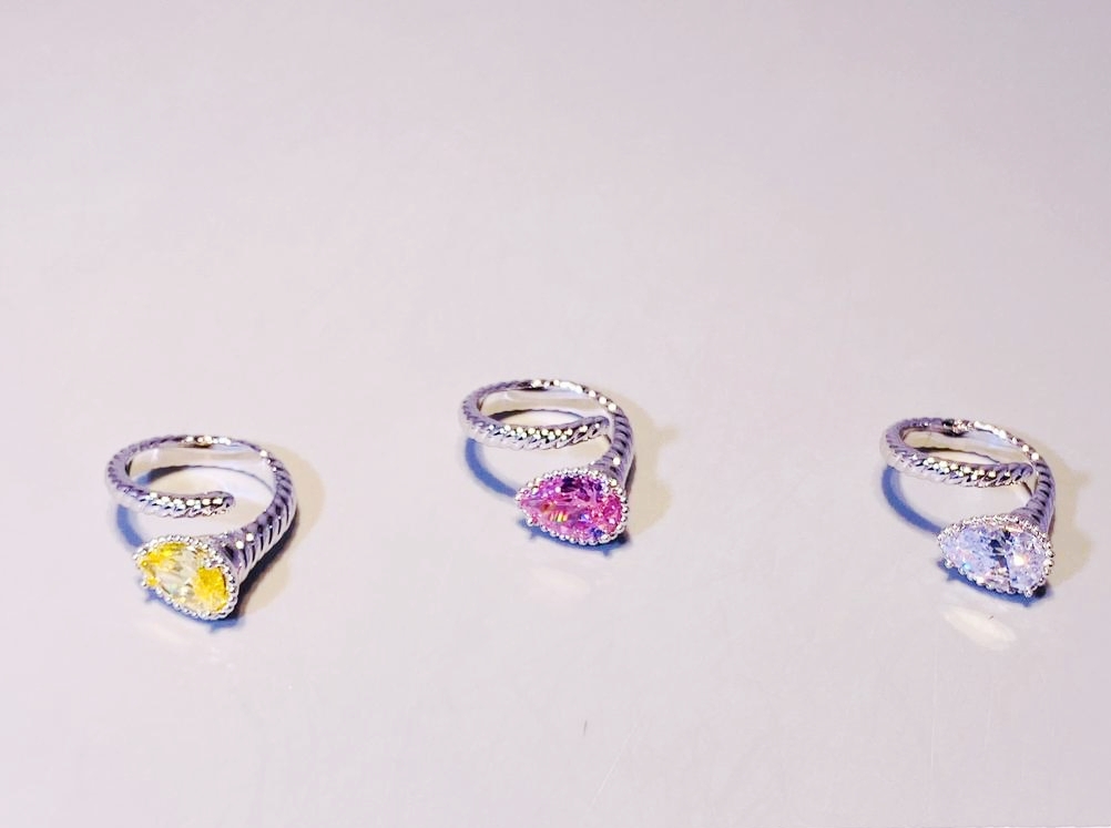 Кольцо разъемное с цветной вставкой каплей