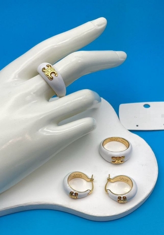 Стильное кольцо в стиле CELINE с белой/черной эмалью