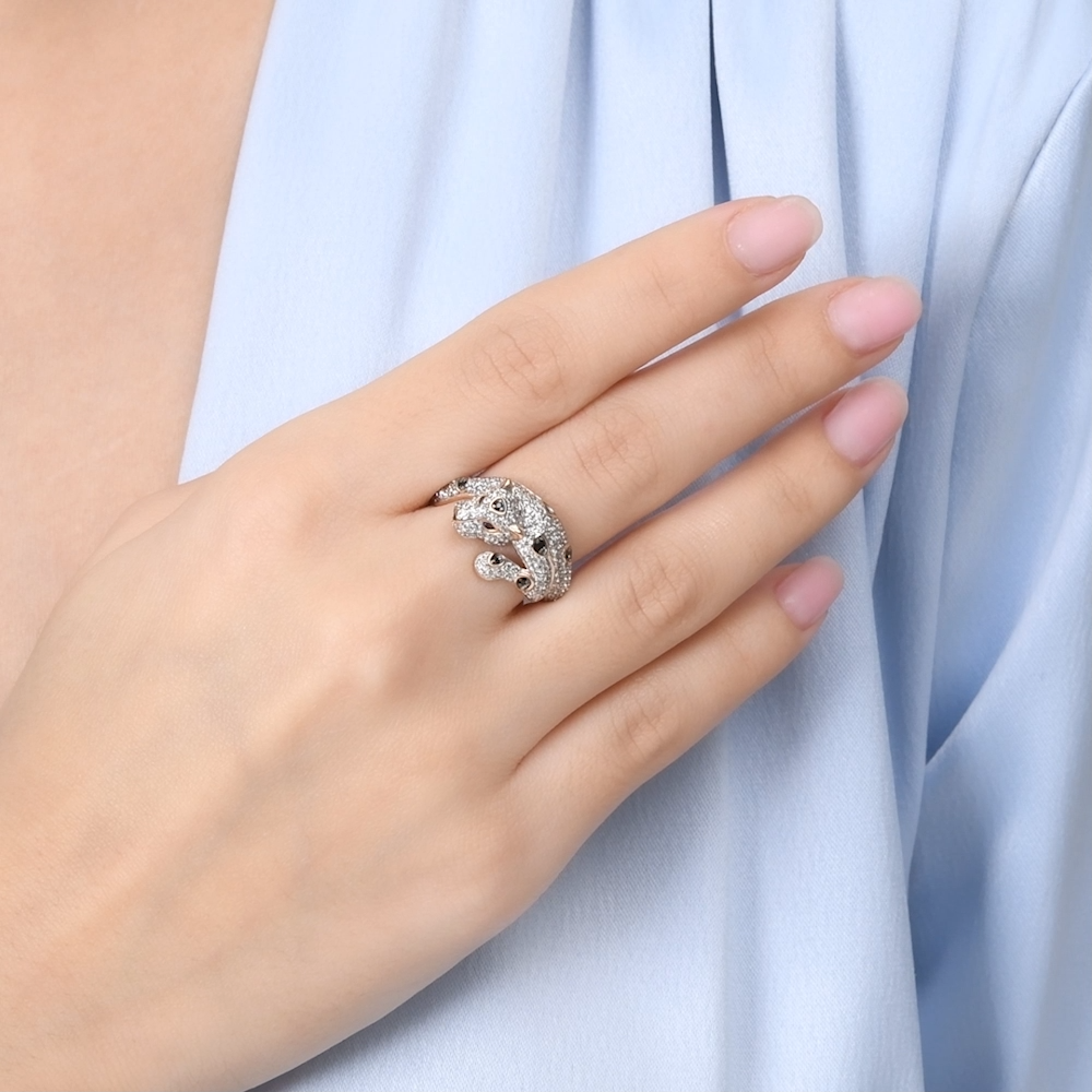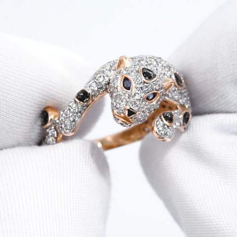 716340- Кольцо ПАНТЕРА из золота 585 пробы со шпинелем, корундами и фианитами