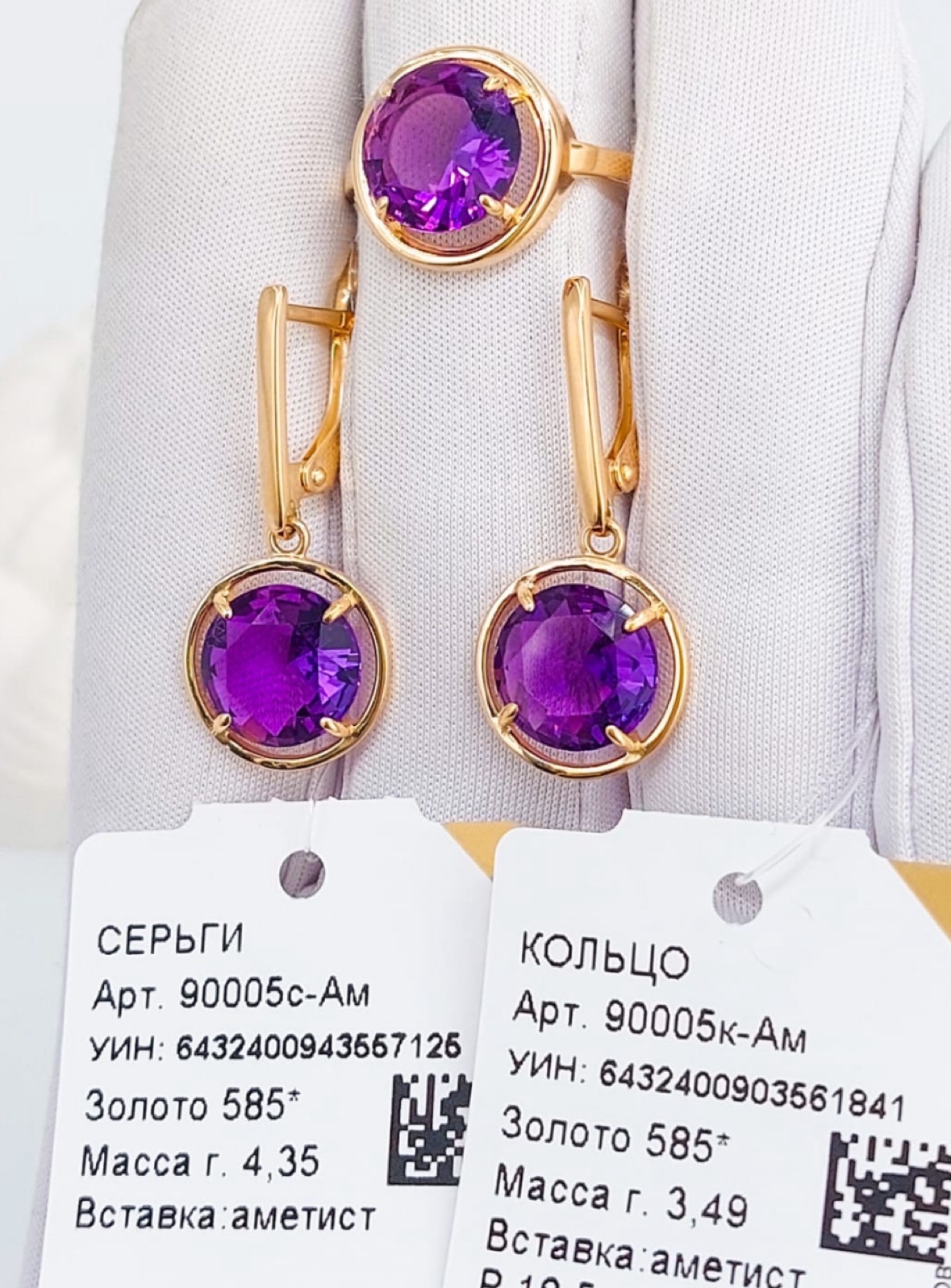 90005к- Кольцо из золота 585 пробы с аметистом круглой огранки