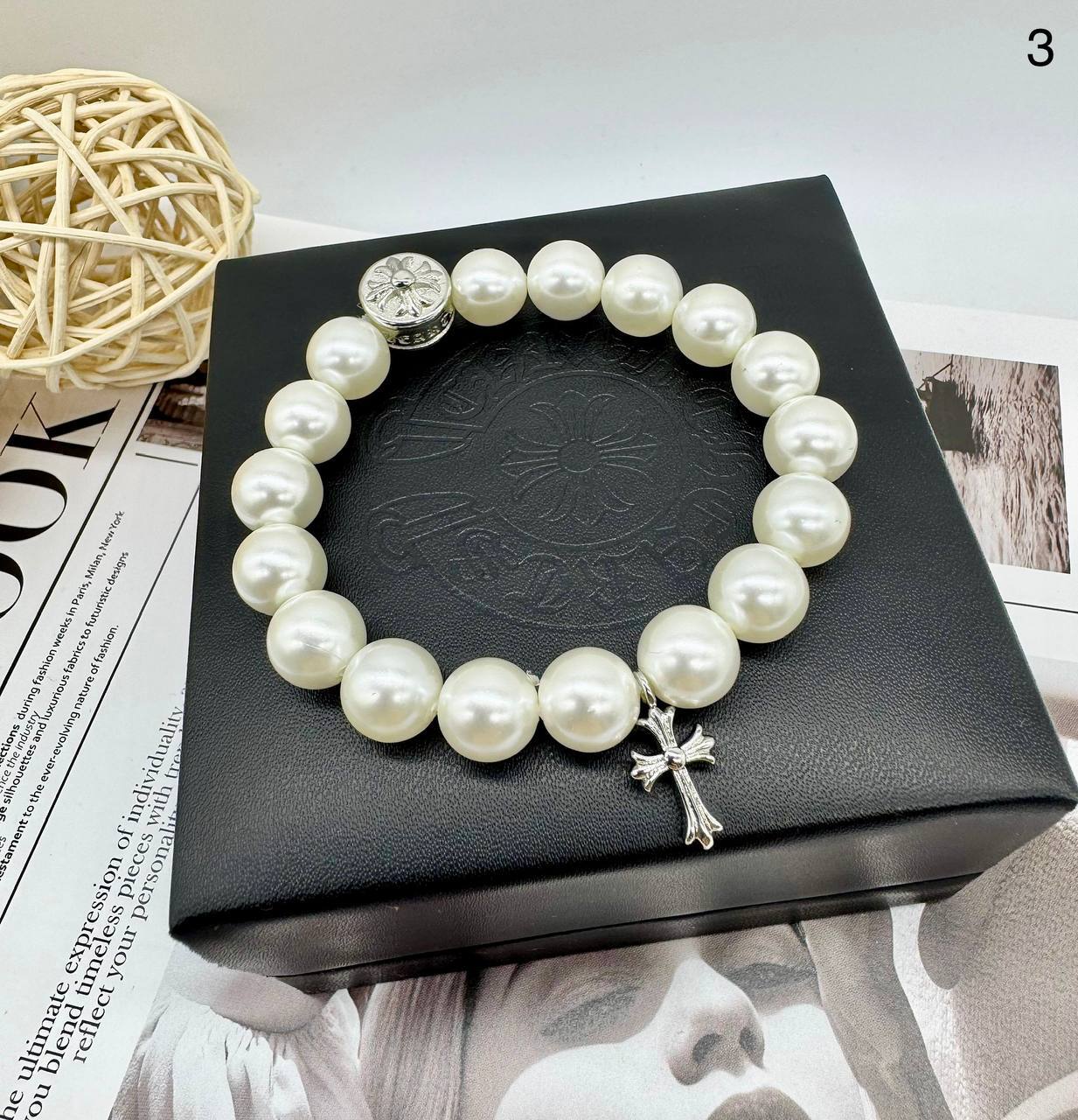 Браслет из жемчуга c подвеской крест style CHROME HEARTS