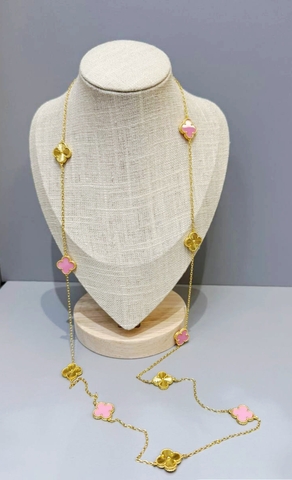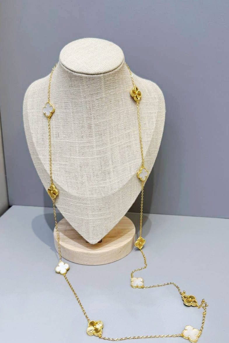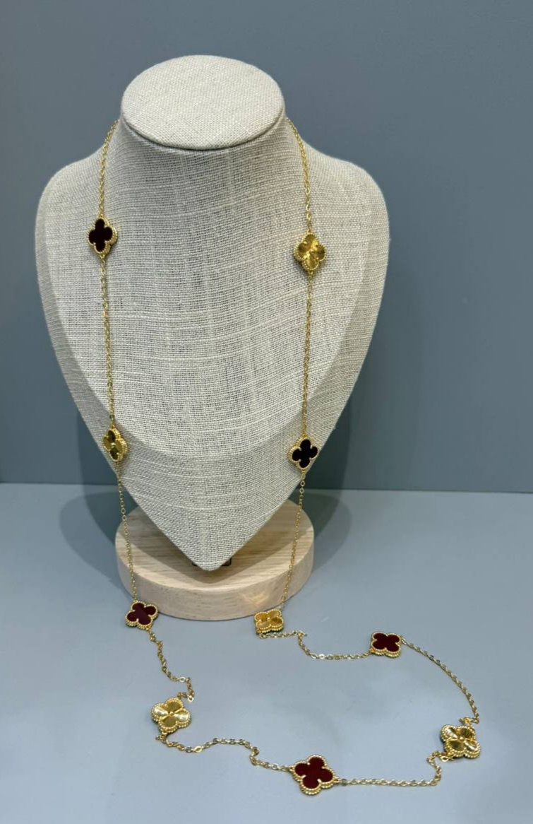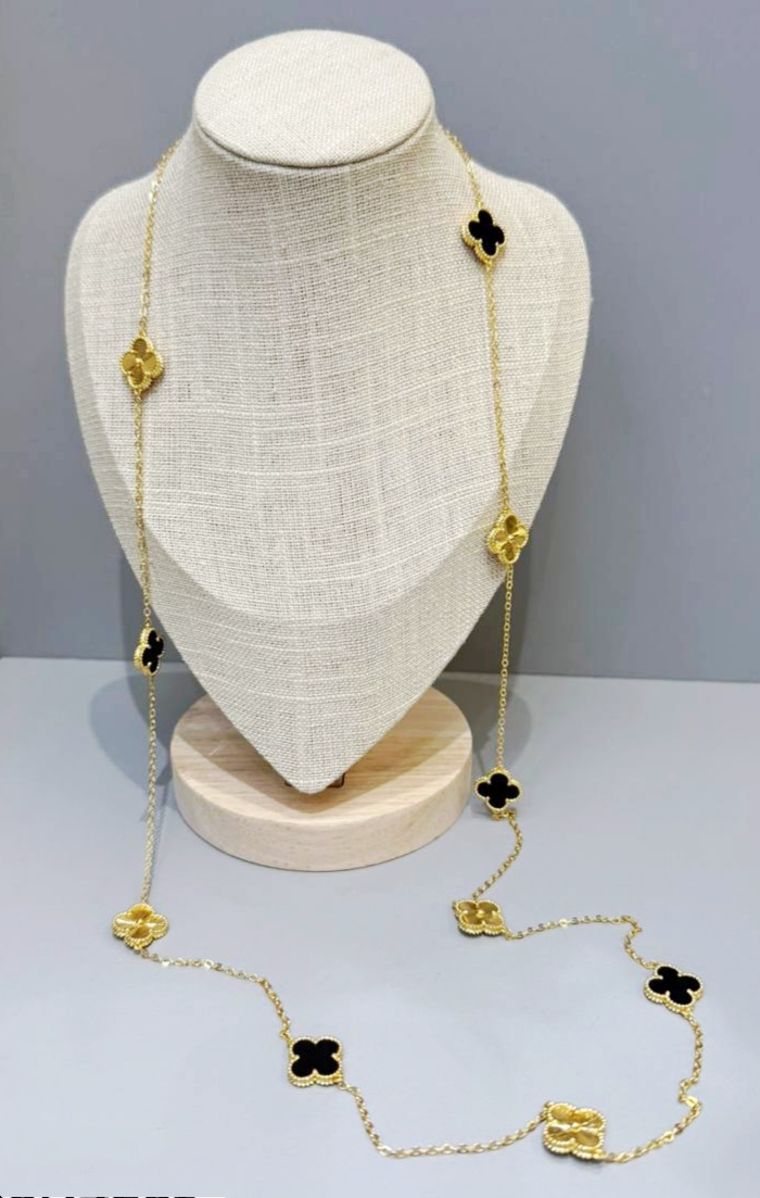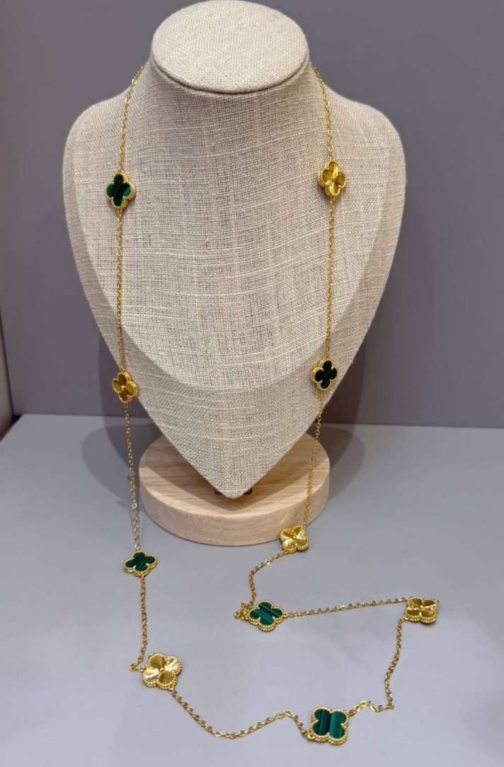 Колье сотуар длинное Trendy 10 мотивов клевер лимонная позолота