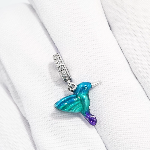 94033041 - Подвеска - шарм КОЛИБРИ из серебра с фианитами и эмалью