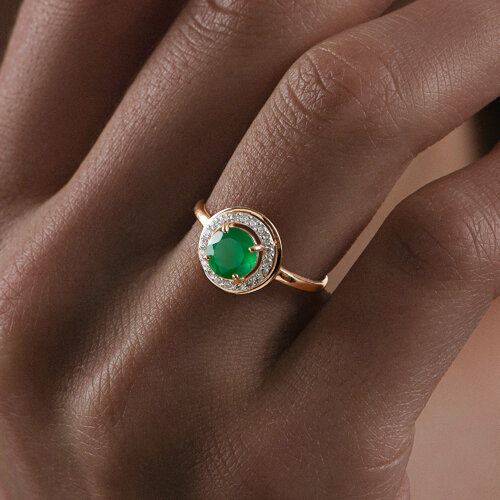 51-310-01426-2 - Кольцо круглое из золота 585 пробы с агатом и фианитами