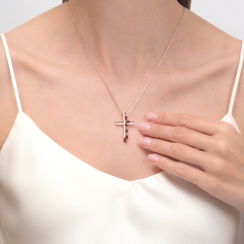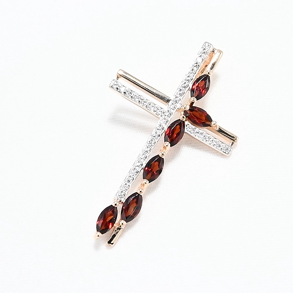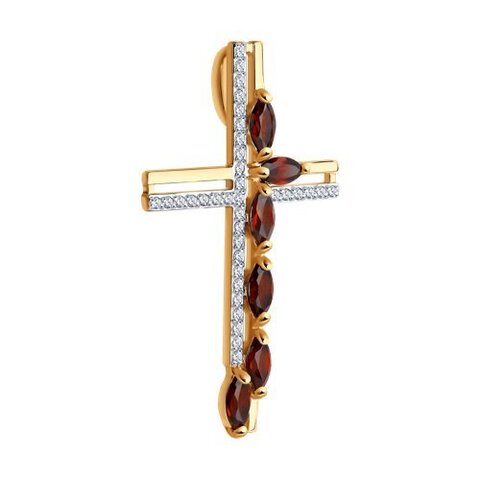 732080 - Подвеска-крест из золота 585 пробы с гранатами и фианитами