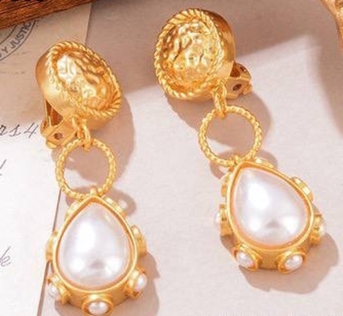 56437- Серьги с подвесками каплями в позолоте, итальянский винтаж