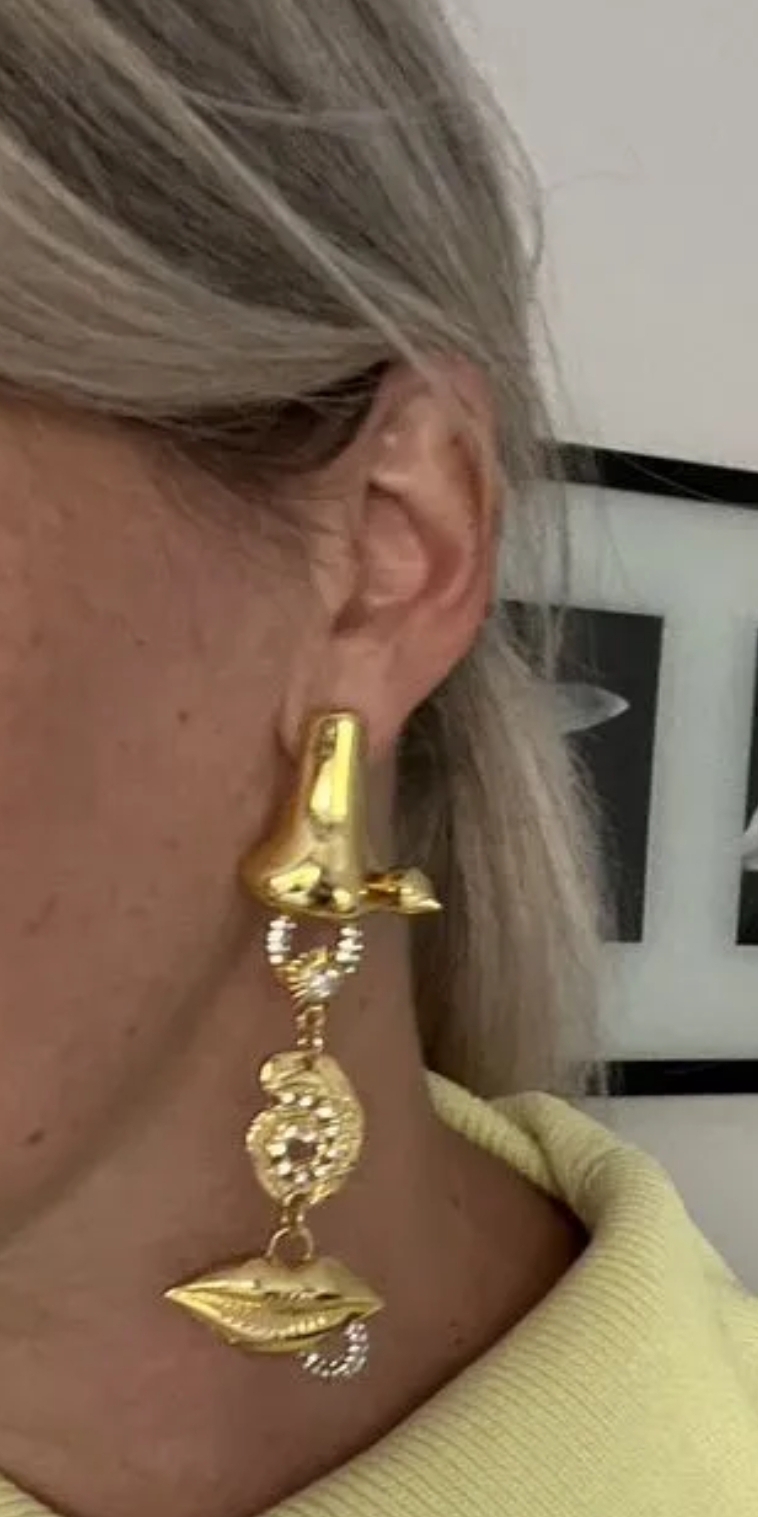 73322- Длинные асимметричные серьги в стиле Schiaparelli с подвесками