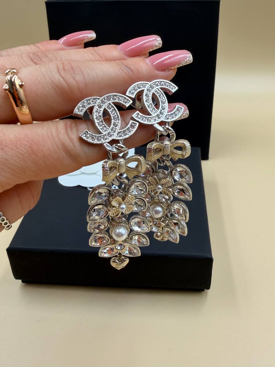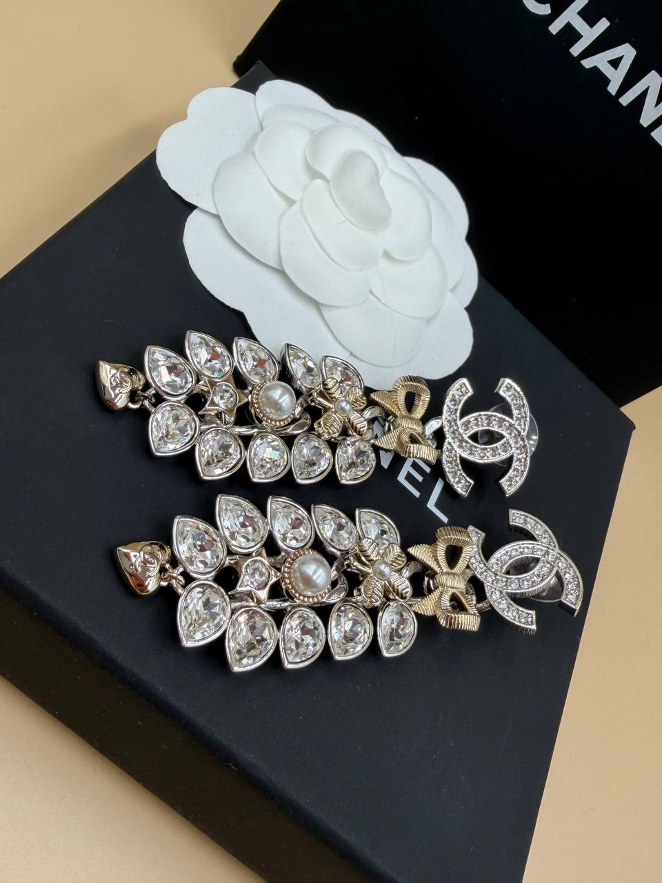 Серьги CHANEL длинные с кристаллами