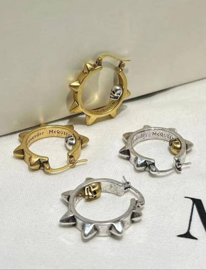 Серьги-конго с шипами Alex McQueen матовое золото/серебро