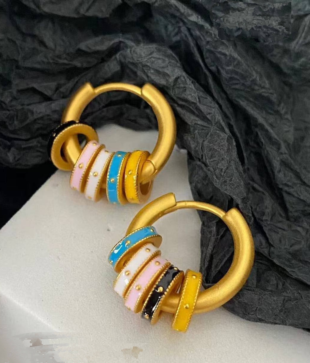 Серьги-конго style by CELINE с подвесками колечками с цветной эмалью