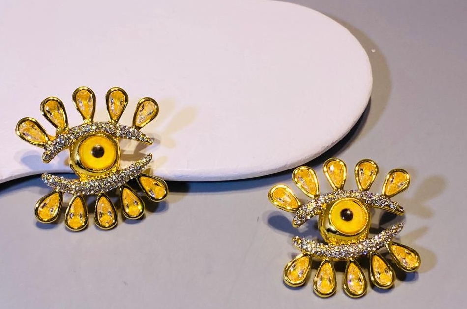 Серьги-пусеты жёлтый глаз с каплями в стиле Schiaparelli цвет матовое золото