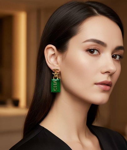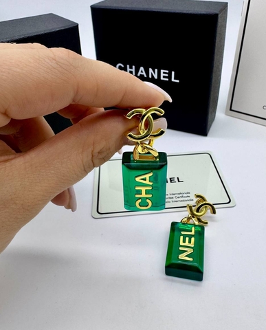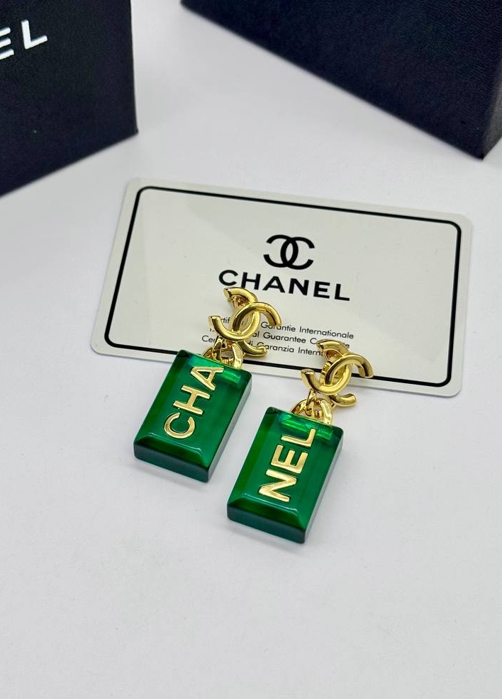 Серьги с зелеными прямоугольными подвесками CHANEL
