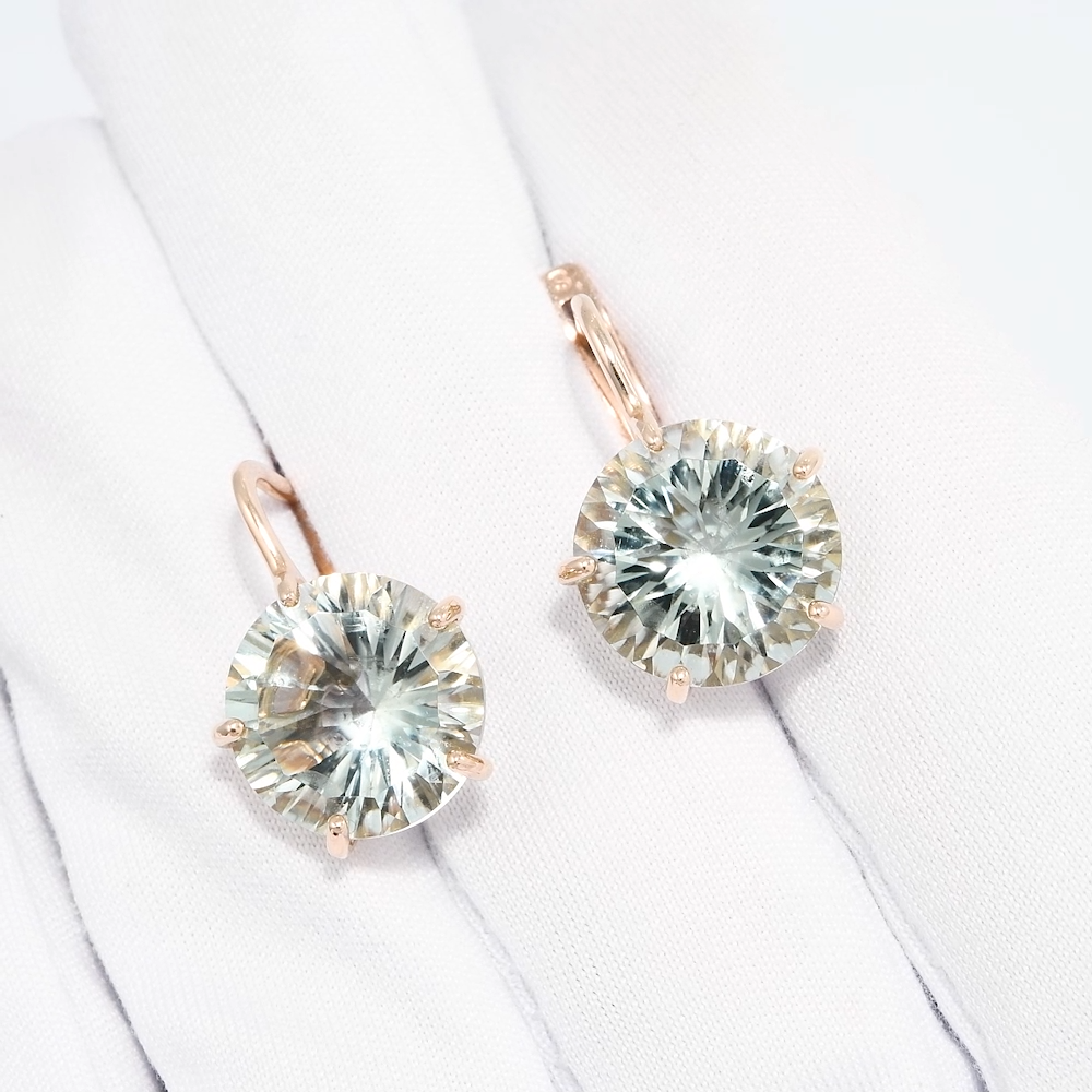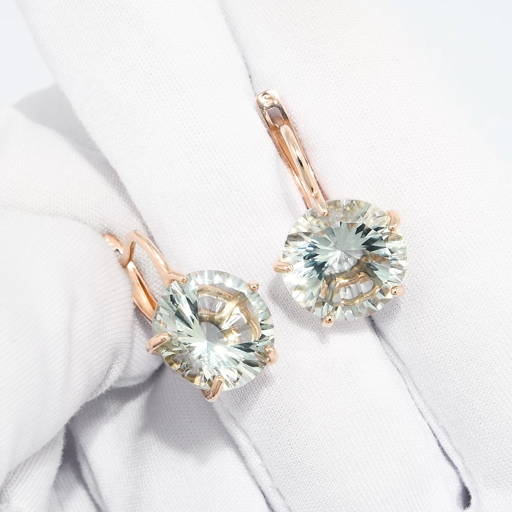 727801 - Серьги из золота 585 пробы со светло-зелеными аметистами
