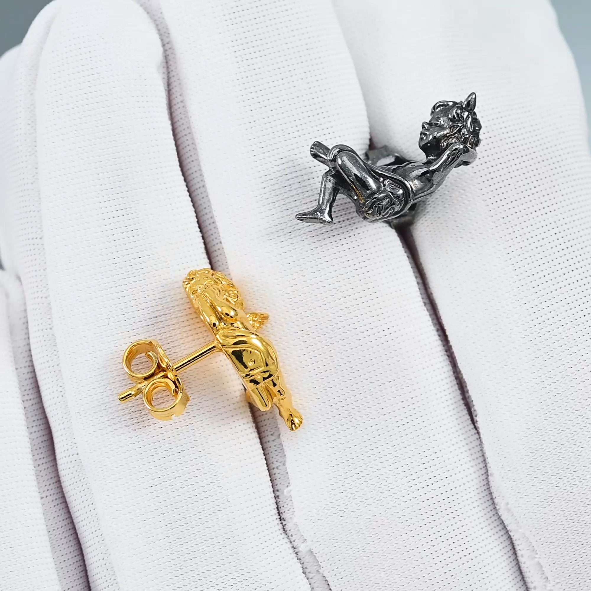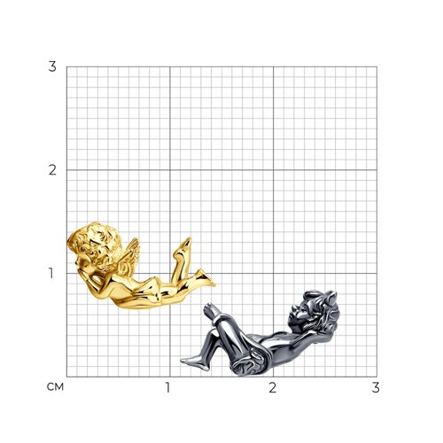 Серьги пусеты Ангел и Демон (Прими свою тень) из серебра 925 пробы