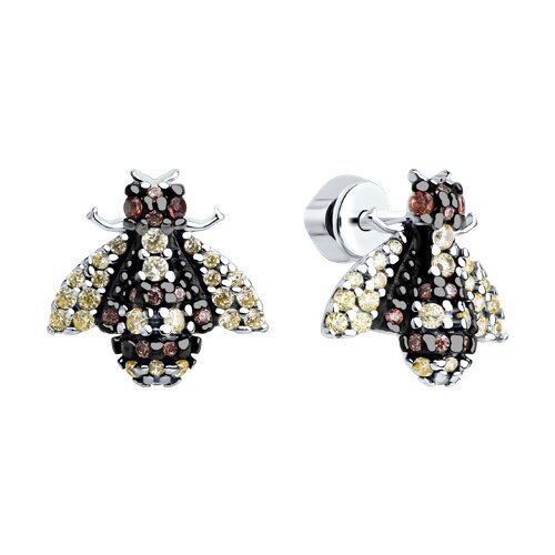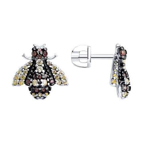 94026828- Серьги-пусеты МУХИ из серебра с цветными фианитами