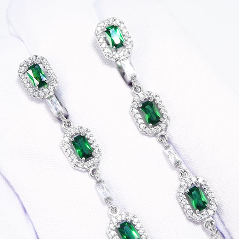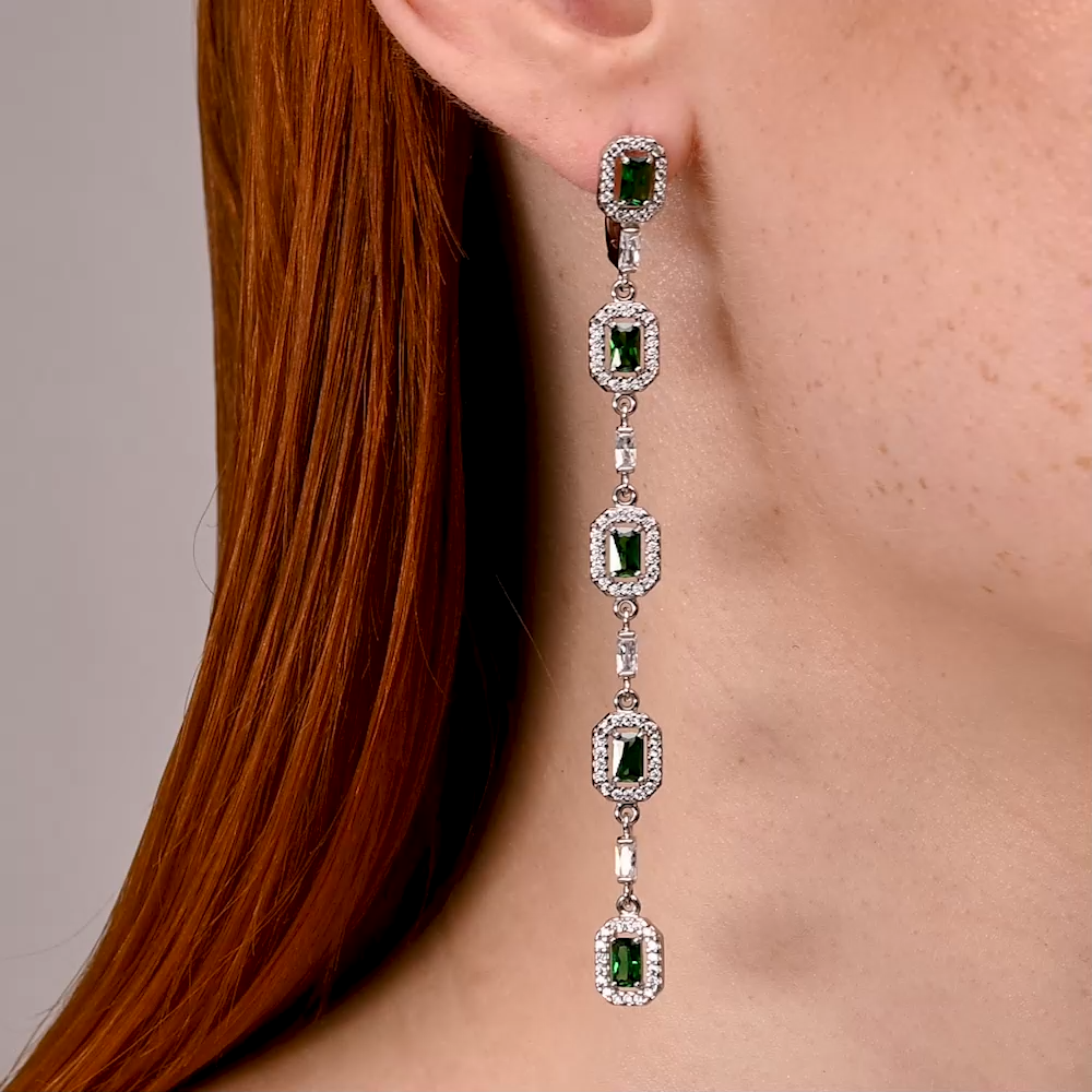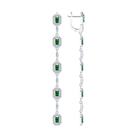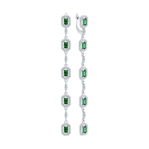 94027048 - Серьги длинные из серебра с изумрудными фианитами