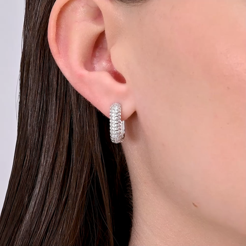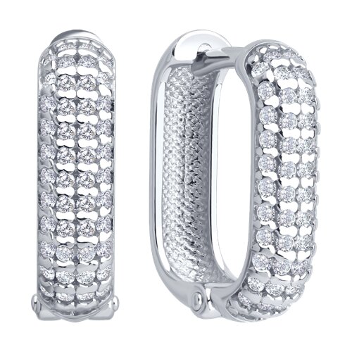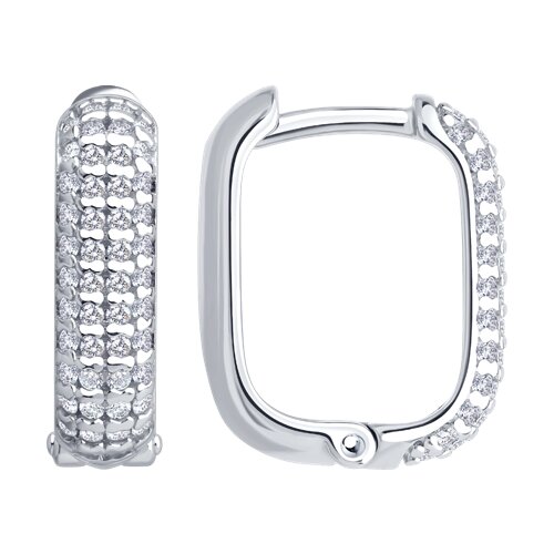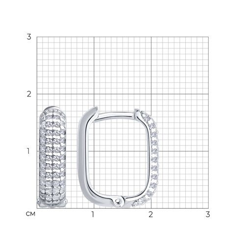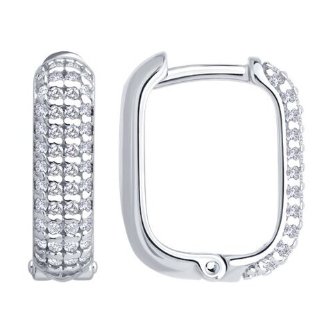 94027129 - Серьги-конго прямоугольник из серебра 925 пробы в обсыпке из фианитов