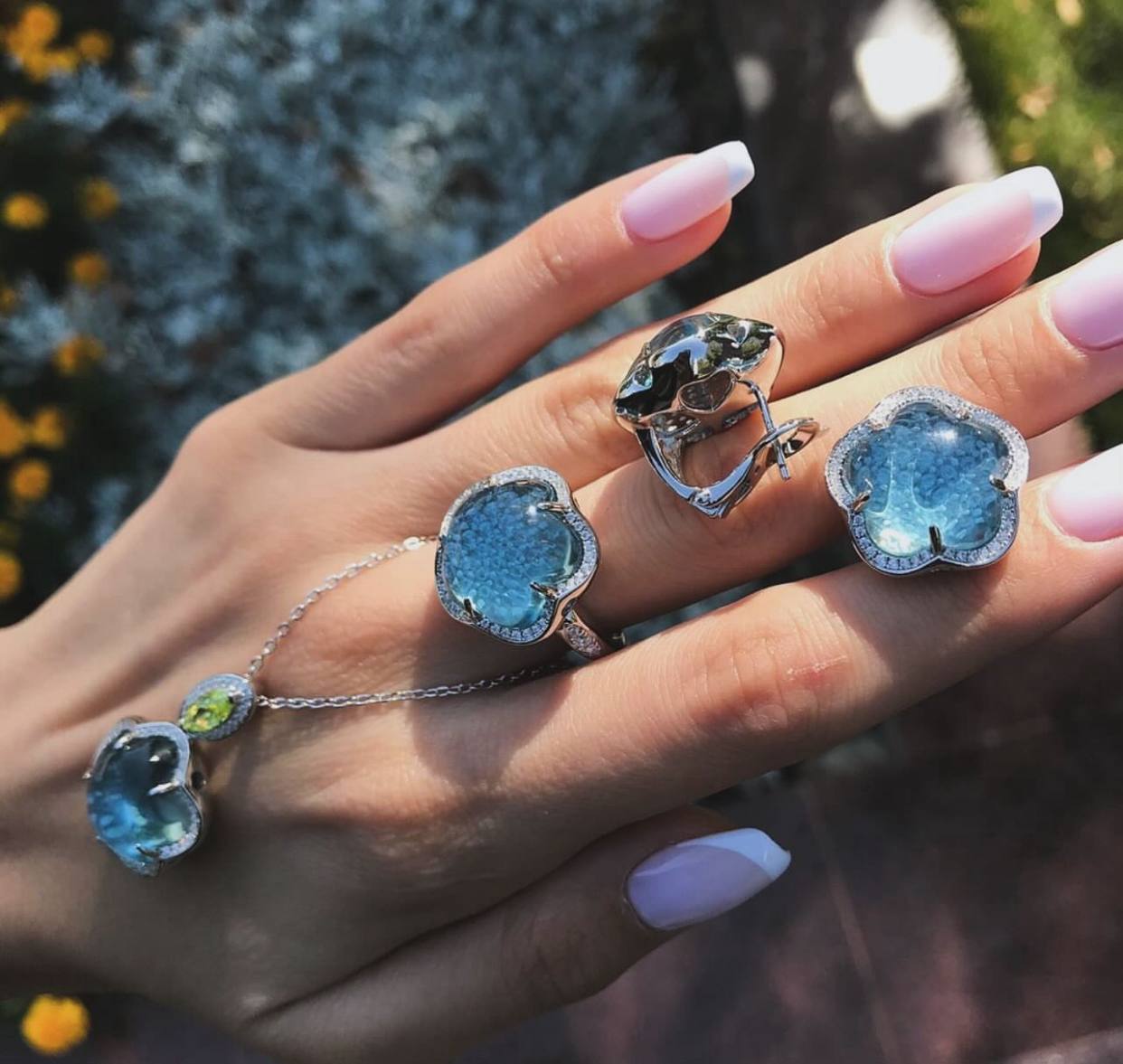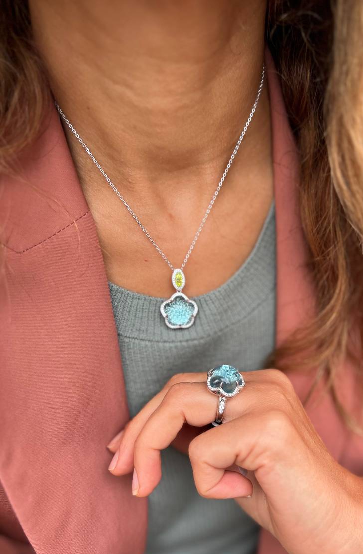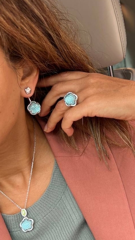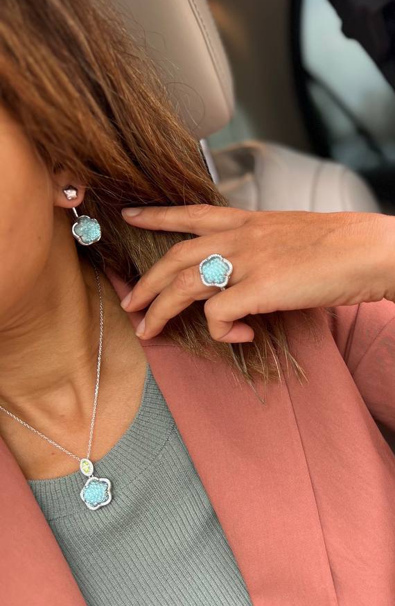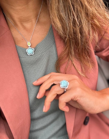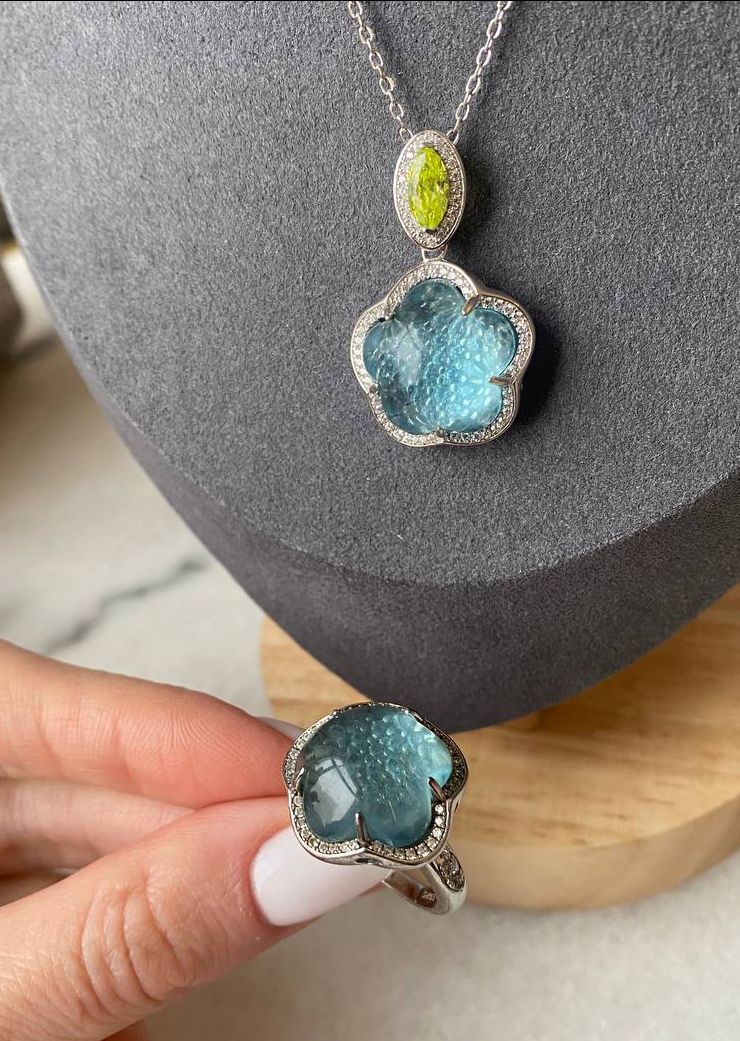 Комплект украшений из серебра серьги+кольцо+кулон Pasquale Bruni коллекция Ton Joli голубая вставка