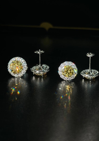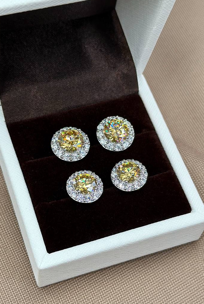 Серьги- пусеты из серебра 925 пробы с желтыми муассанитами
