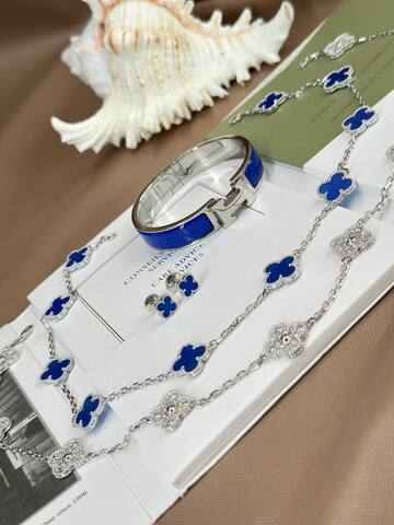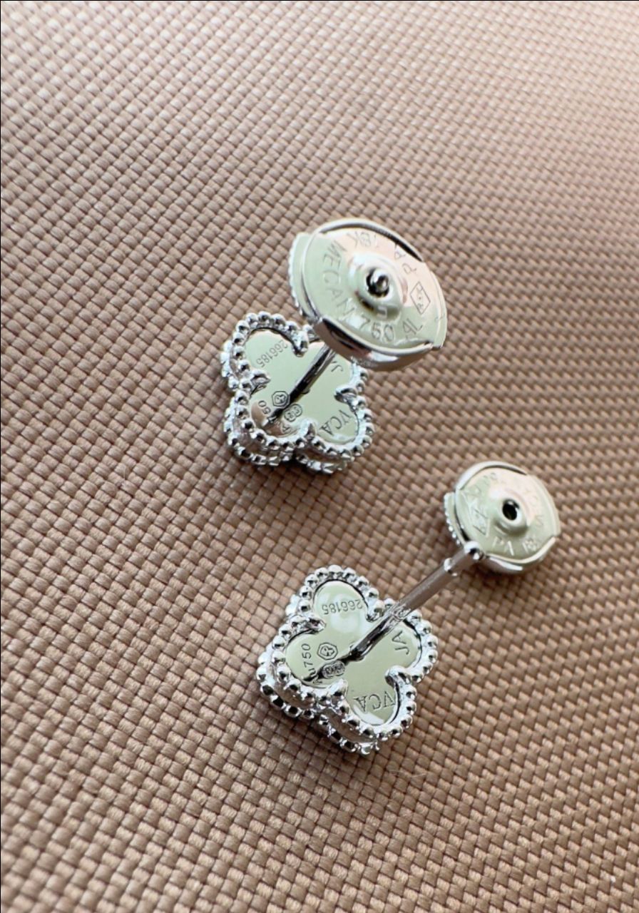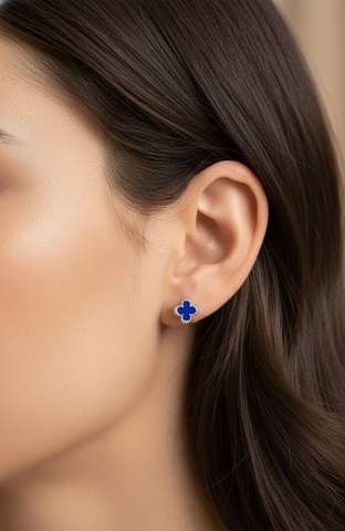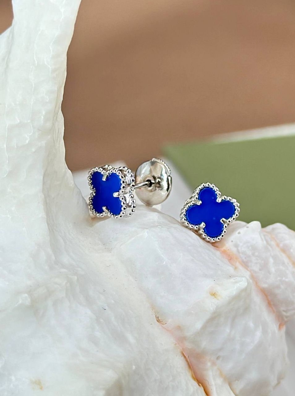 Серьги пусеты клевер синий VCA качество white VGOLD