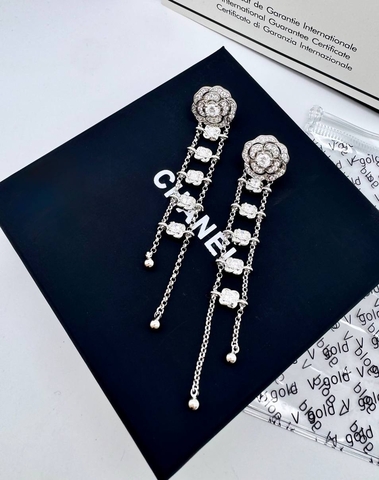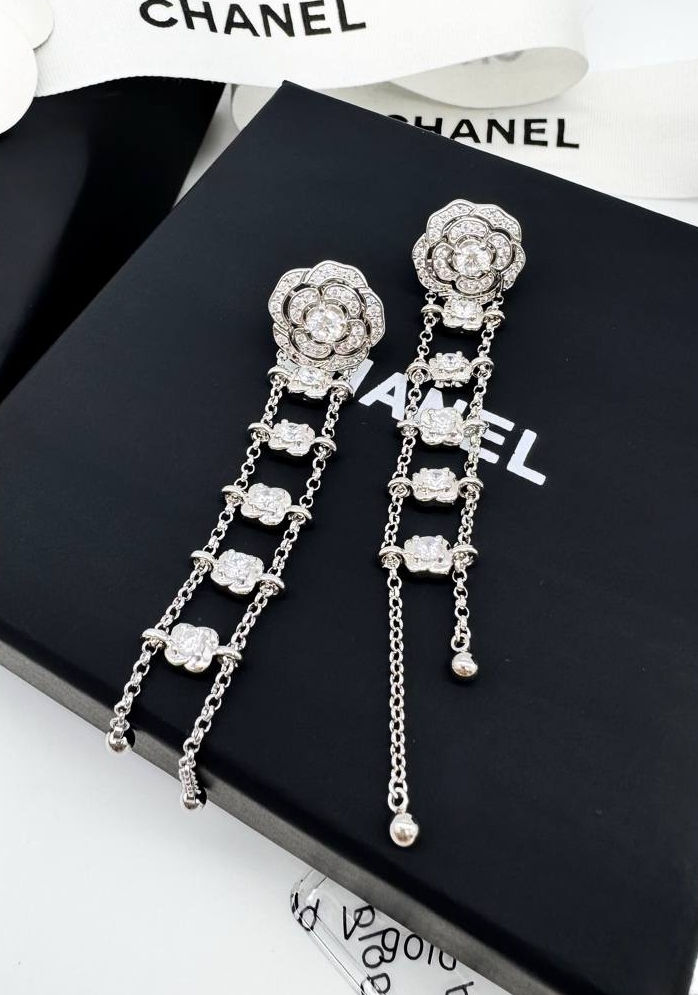 Серьги CHANEL длинные CAMELIA качество VGOLD