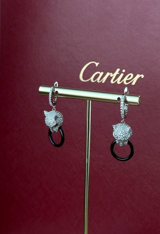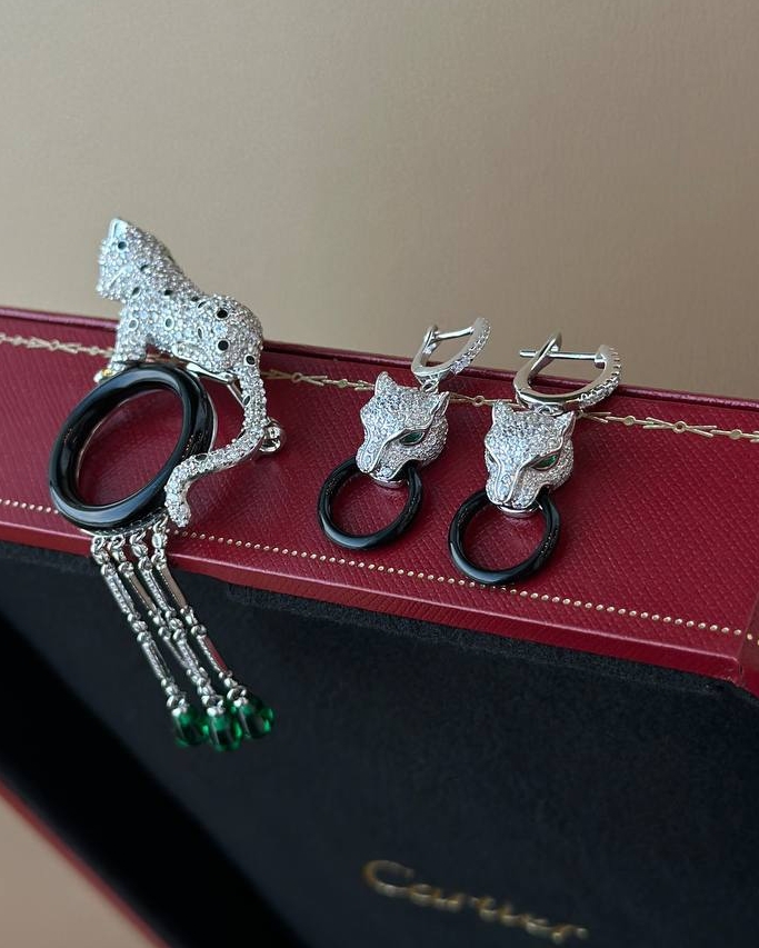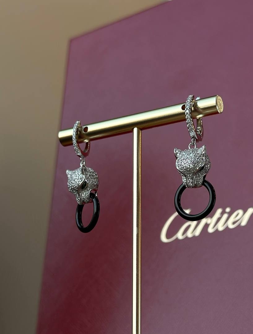 80755- Серьги "Голова Пантеры" из серебра с кольцом из керамики