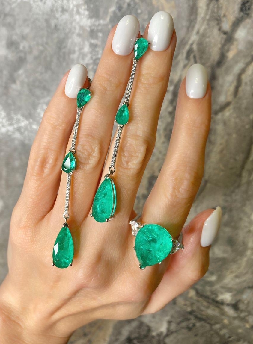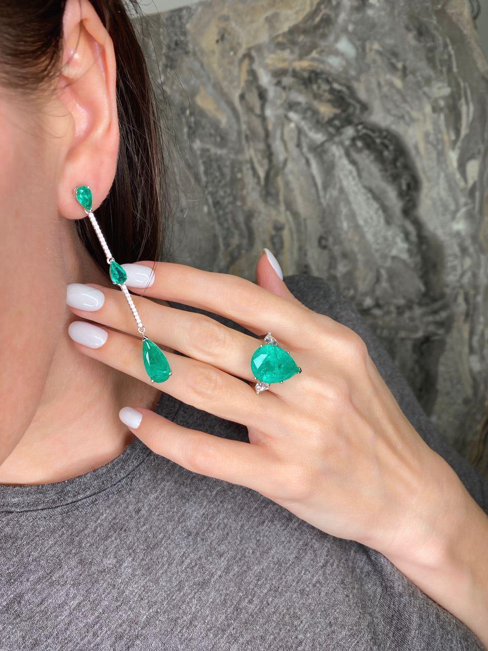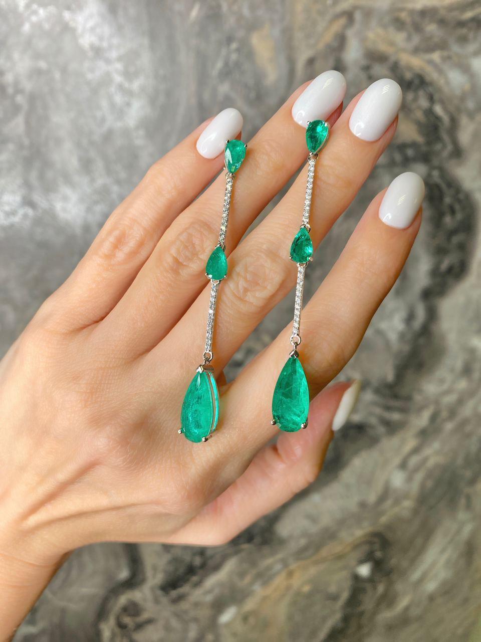 60786- Серьги длинные из серебра с каплями из кварца цвета параиба