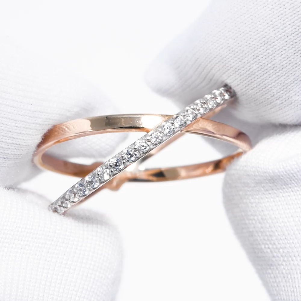 018573 - Кольцо ИКС из золота 585 пробы с дорожкой из фианитов