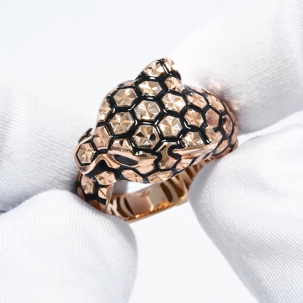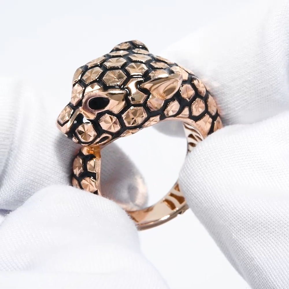 019355 - Кольцо ПАНТЕРА из золота 585 пробы с черной эмалью
